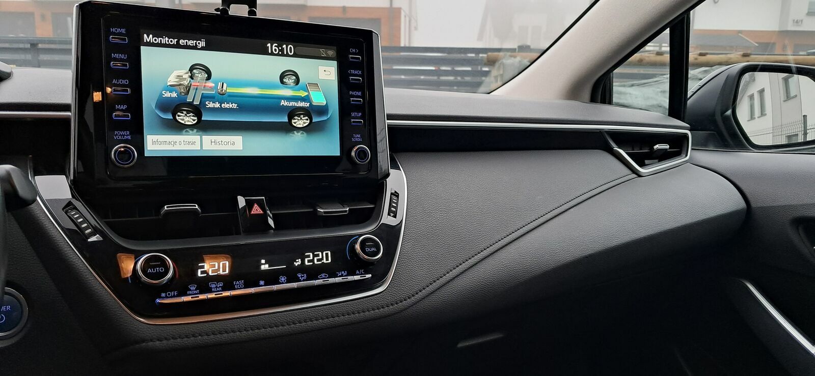 Wyposażenie: ABS, Antena dachowa Shark-Fin, Automatyczne światła drogowe, BA-system wspomagania hamowania, Czujnik zmierzchu, EBD-elektroniczny rozdział hamowania, Elektrycznie regulowane szyby przednie i tylne, Elektryczny hamulec postojowy (EPB), Elementy stylizacyjne zewnętrzne chromowane, ESC-układ stabilizacji toru jazdy, Felgi aluminiowe 16 z ogumieniem 205/55, Fotel kierowcy z regulacją wysokości, Fotele przednie z profilowanym podparciem bocznym, Funkcja automatycznego opuszczania i unoszenia szyb, przód i tył, Funkcja oświetlenia Follow-Me-Home, Gniazdo 12V, Gniazdo USB i Aux-In, HAC-system wspomagający pokonywanie podjazdu, Immobilizer, Inteligentny system utrzymania toru jazdy (LKA), Interfejs Android Auto i Apple CarPlay, Kamera cofania, Kanapa tylna składana, dzielona 60/40, Kierownica wielofunkcyjna, Gałka dźwigni zmiany biegów skórzana, Kieszeń w oparciu fotela pasażera, Klimatyzacja automatyczna-dwustrefowa, Kolumna kierownicy regulowana elektrycznie w dwóch płaszczyznach, Komputer pokładowy, Lakier uni, Listwa okienna chromowana, Lusterka boczne ogrzewane, Lusterka boczne regulowane elektrycznie, Miękkie materiały wykończeniowe, Nawiew wentylacji na tylną kanapę, Obrotomierz, Obsługa stacji radiowych w technologii cyfrowej (DAB), Ogranicznik prędkości-automatyczny, Podłokietnik przedni, regulowany, Podłokietnik tylny, Podsufitka jasna, Poduszka powietrzna kolan kierowcy, Poduszki powietrzne boczne, Poduszki powietrzne kierowcy i pasażera, Poduszki powietrzne kurtynowe, Prędkościomierz analogowy, Sygnalizacja niezapiętych pasów bezpieczeństwa, System automatycznego powiadamiania ratunkowego (eCall), System Bluetooth, System monitorowania ciśnienia w oponach, System multimedialny Toyota Touch 2 z ekranem dotykowym, System oświetlenia wnętrza, System rozpoznawania znaków drogowych (RSA), System wykrywania zmęczenia kierowcy (SWS), Światła do jazdy dziennej typu LED, Światła główne w technologii projektowej, Światła przeciwmgielne LED, Tapicerka materiałowa, Tempomat aktywny, Uchwyt ISOFIX do mocowania fotelika dziecięcego, Układ wczesnego reagowania w razie ryzyka zderzenia (PCS) z systemem wykrywania pieszych (PD), Uruchamianie pojazdu przyciskiem Start/Stop, Usługi łączności Toyota Connect, VSC-system stabilizacji toru jazdy z TRC, Wykończenie elementów wnętrza w Kolorz ciemnym, Wyłącznik poduszki powietrznej pasażera, Wyświetlacz kolorowy 4,2 cala, Zabezpieczenie tylnych drzwi przed otwarciem przez dzieci, Zamek centralny sterowany pilotem, Komplet dywaników i wycieraczek gumowych (również do bagażnika); Zestaw do naprawy przebitej opony, Koło zapasowe, Lakier metalik, Pakiet Style, Pakiet tech.